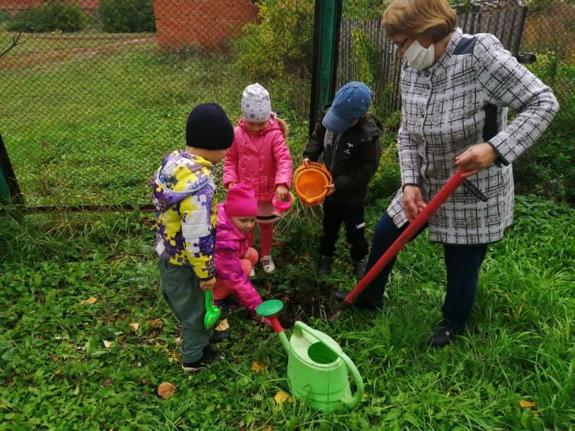 Наши дети тоже не остались в стороне. Посадили ёлочки на территории своего детского сада.